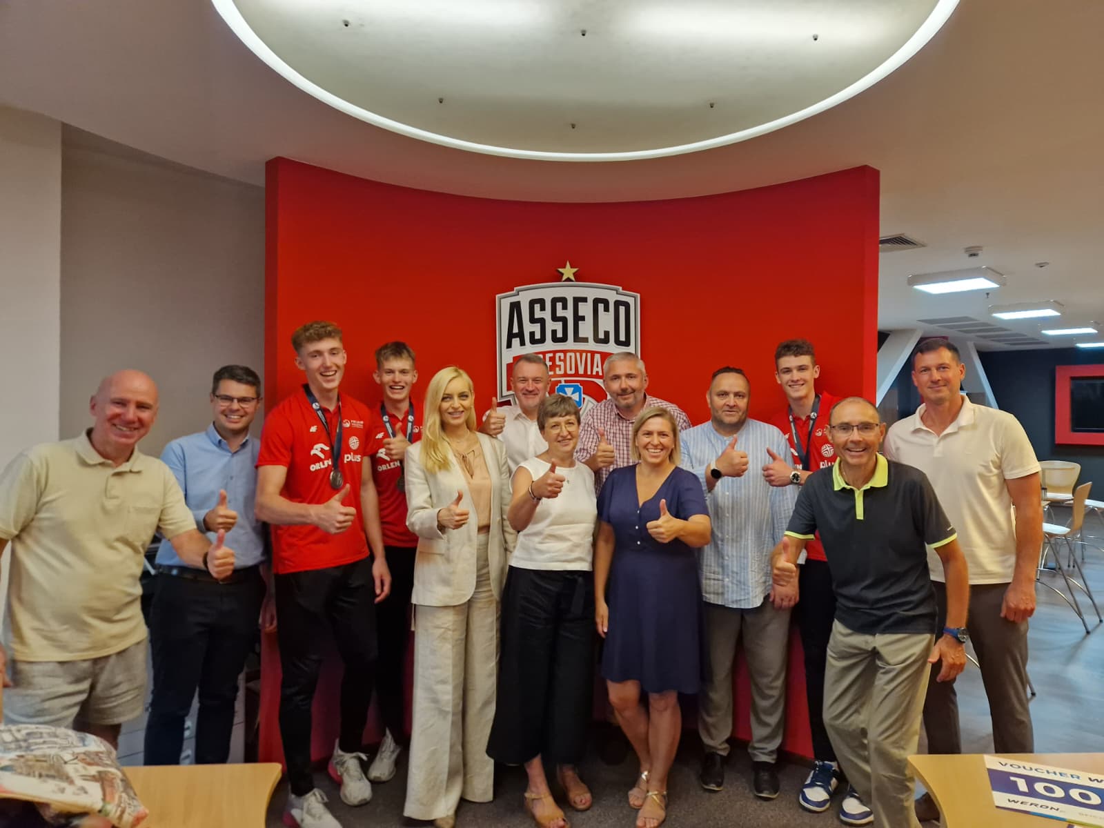 Po powrocie do Rzeszowa trzech Wicemistrzów Świata U-19 z AKS-u wraz z Rodzicami i naszymi Trenerami, na zaproszenie Prezesa Piotra Maciąga, odwiedzili siedzibę Asseco Resovii na Podpromiu. Oskar, Tymek i Maks mieli okazję podzielić się wrażeniami z turnieju finałowego Mistrzostw Świata oraz "pocelebrować" sukces na wspólnym obiedzie. Pełny skład spotkania prezentował się następująco: